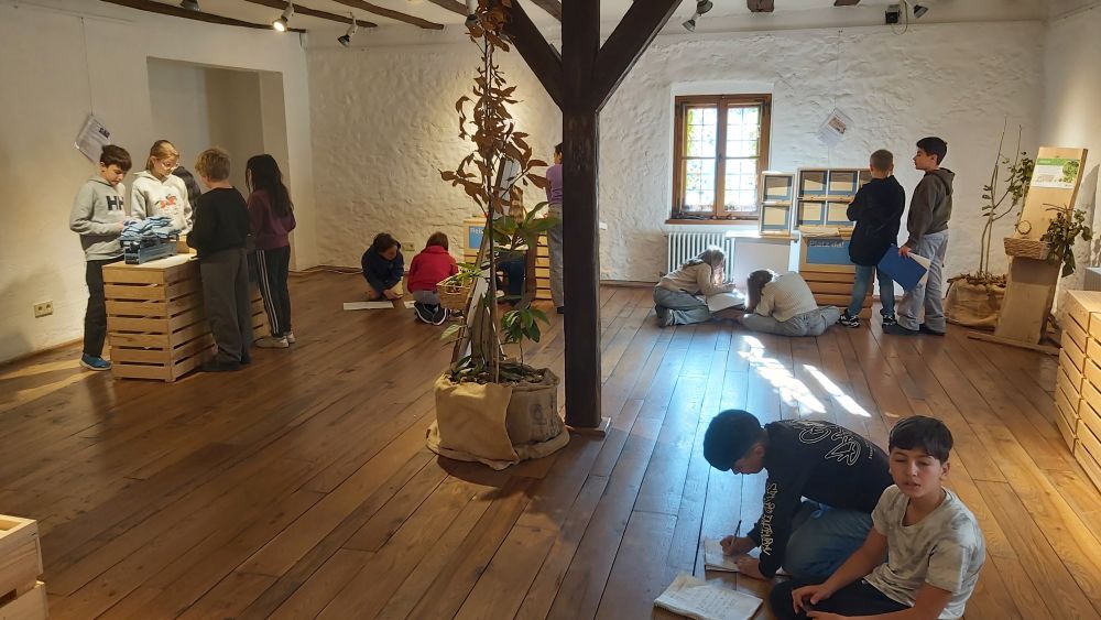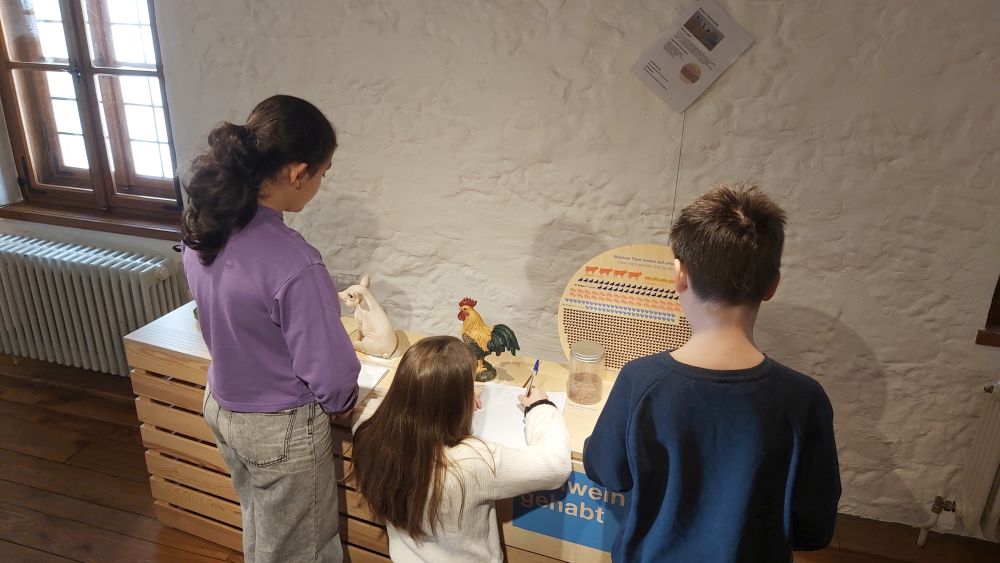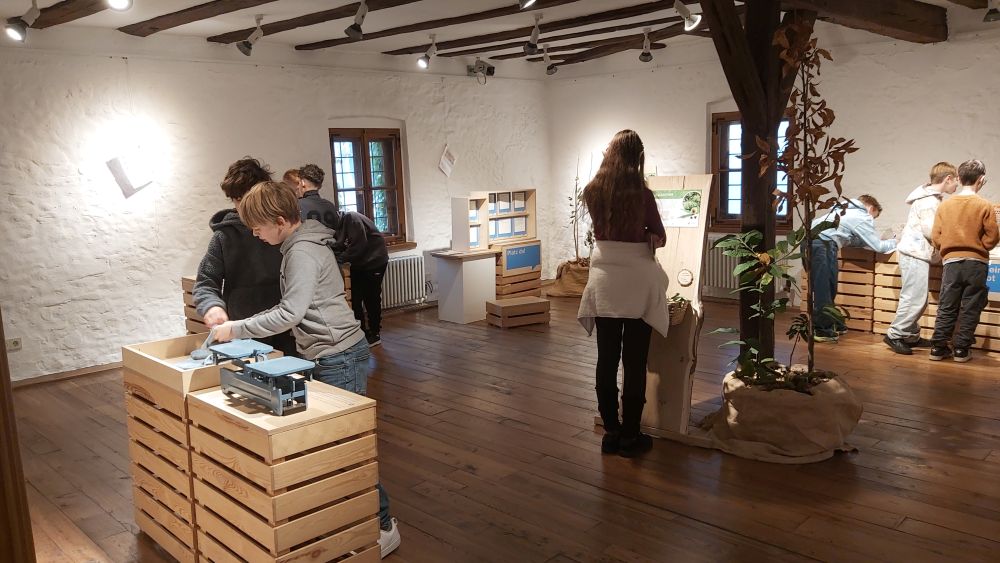 Im Zeitraum vom 7. Oktober bis 5. November besuchten vier Klassen und Kurse die Wanderausstellung „Klima-Gourmet“ im Frank-Loebschen Haus, die sich mit der Verbindung von Ernährung und Klimaschutz auseinandersetzt. Die kleine, aber sehr interessante und anschauliche Mitmach-Ausstellung lieferte neue Erkenntnisse, sei es für den Bio-Leistungskurs II der 11. Klasse, die Schüler und Schülerinnen der 7d, 6c oder 5a. Wussten Sie, dass eine Person in Deutschland während ihres Lebens durchschnittlich 1094 Tiere verspeist, darunter über 900 Hühner, 46 Schweine und 4 ganze Rinder? Oder dass 52 % der Nahrungsverschwendung in Deutschland auf das Konto von Privathaushalten gehen? Wenn nicht, dann wenden Sie sich gerne an unsere Schülerinnen und Schüler in der 5a, die beim abschließenden Quiz allesamt glänzten.