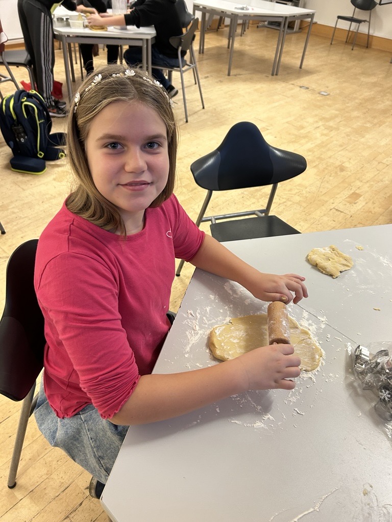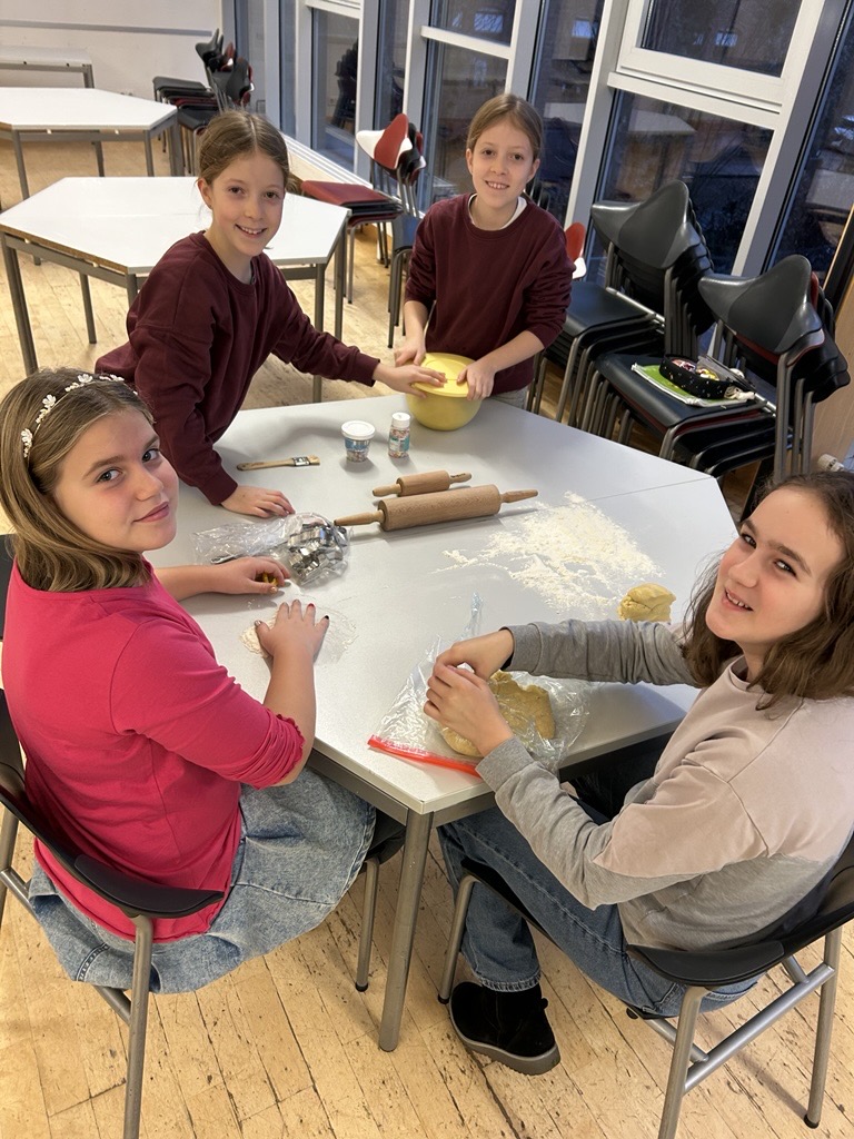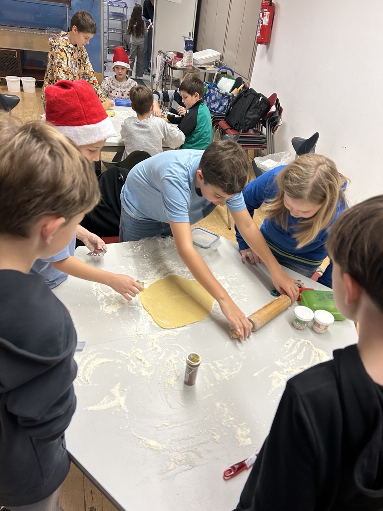 Am vergangenen Mittwoch hat sich die GTS in eine Weihnachtsbäckerei verwandelt. Während im Hintergrund Weihnachtslieder ertönten, waren die Schülerinnen und Schüler der 5b gemeinsam mit Frau Hackbarth, Herr Gerriets und Frau Burckgard tatkräftig am Ausstechen, Backen und Verzieren von Plätzchen. Natürlich musste das Werk auch probeweise verköstigt werden.