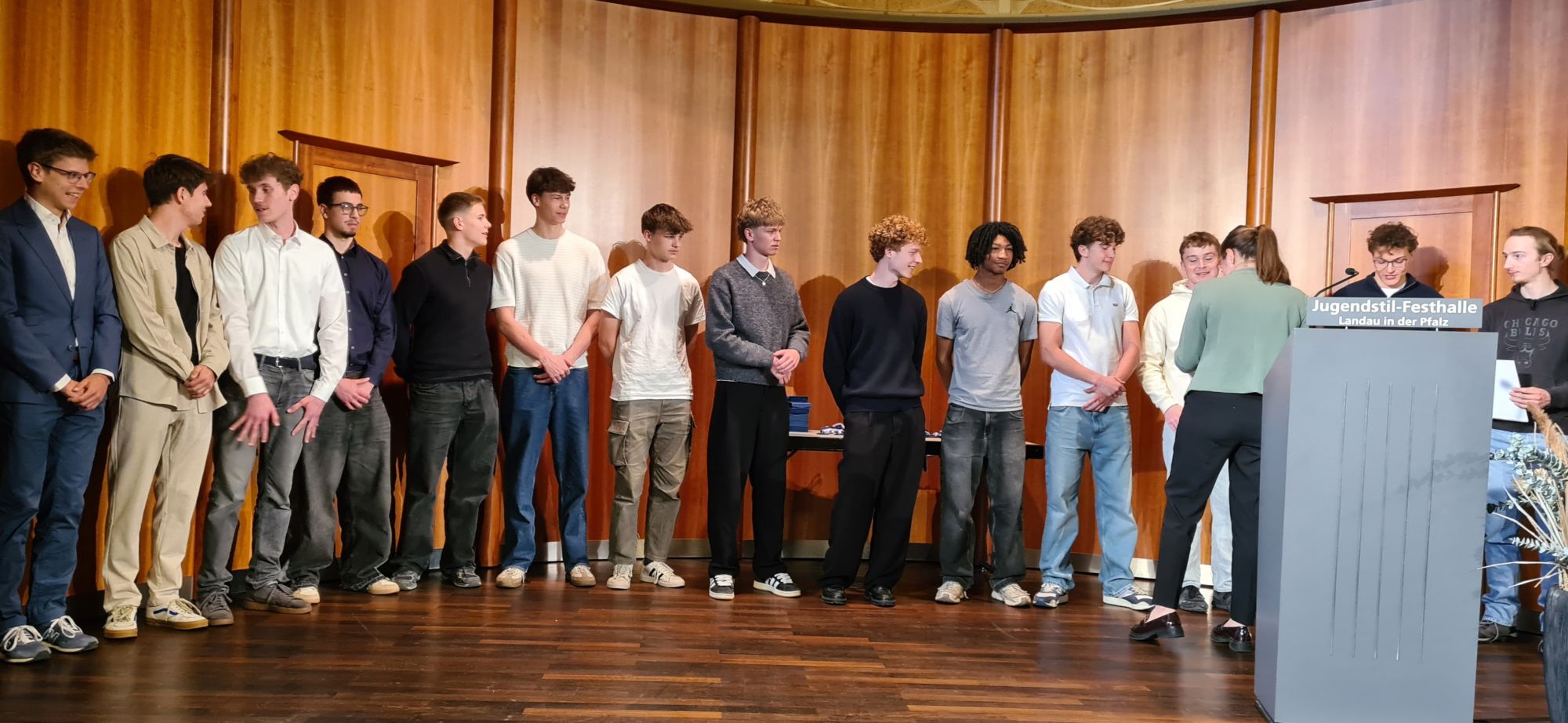 Bei der diesjährigen Sportlerehrung der Stadt Landau am 21. April 2026 in der Festhalle wurde erstmals auch eine Schulmannschaft geehrt: Die U20-Leichtathleten des Otto-Hahn-Gymnasiums, betreut von Regina Graw, erhielten die Stadtsporturkunde für herausragende sportliche Leistungen im vergangenen Jahr. Die OHG-Athleten hatten beim Schulsportwettkampf „Jugend trainiert für Olympia“ mit deutlichem Vorsprung den Landessieg errungen und waren damit – wie bereits im Jahr zuvor – in ihrer Altersklasse die beste Leichtathletik-Schulmannschaft in Rheinland-Pfalz.
