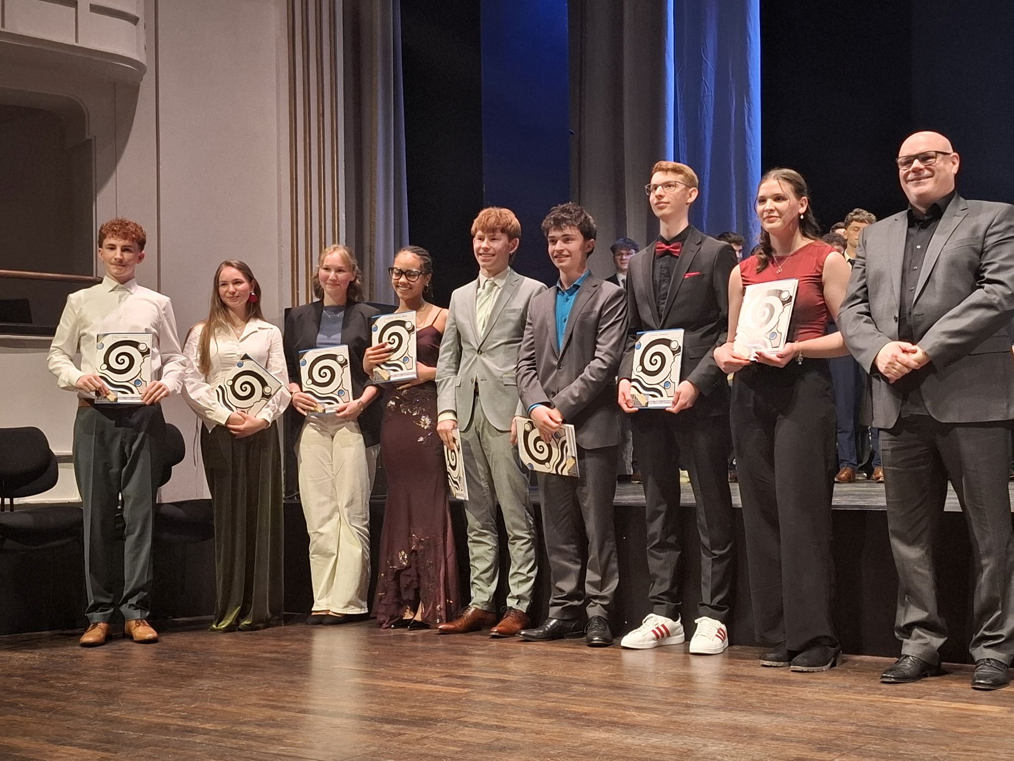 Für die herausragende Abiturnote von 1,0 wurden Madeleine Haas, Marleen Kästel, Gaya Sarian und Fynn-Lasse Herrmann durch den Kreis der Freunde ausgezeichnet. Den Preis des Ministers für vorbildliche Haltung und beispielhaften Einsatz innerhalb der Schulgemeinschaft erhielt Marlene Heckmann. Bereits zuvor hatte der Schulelternbeirat Rebecca Froeck, Samuel Kern und Kilian Kirsch für besonderes Engagement während ihrer Schulzeit gewürdigt.