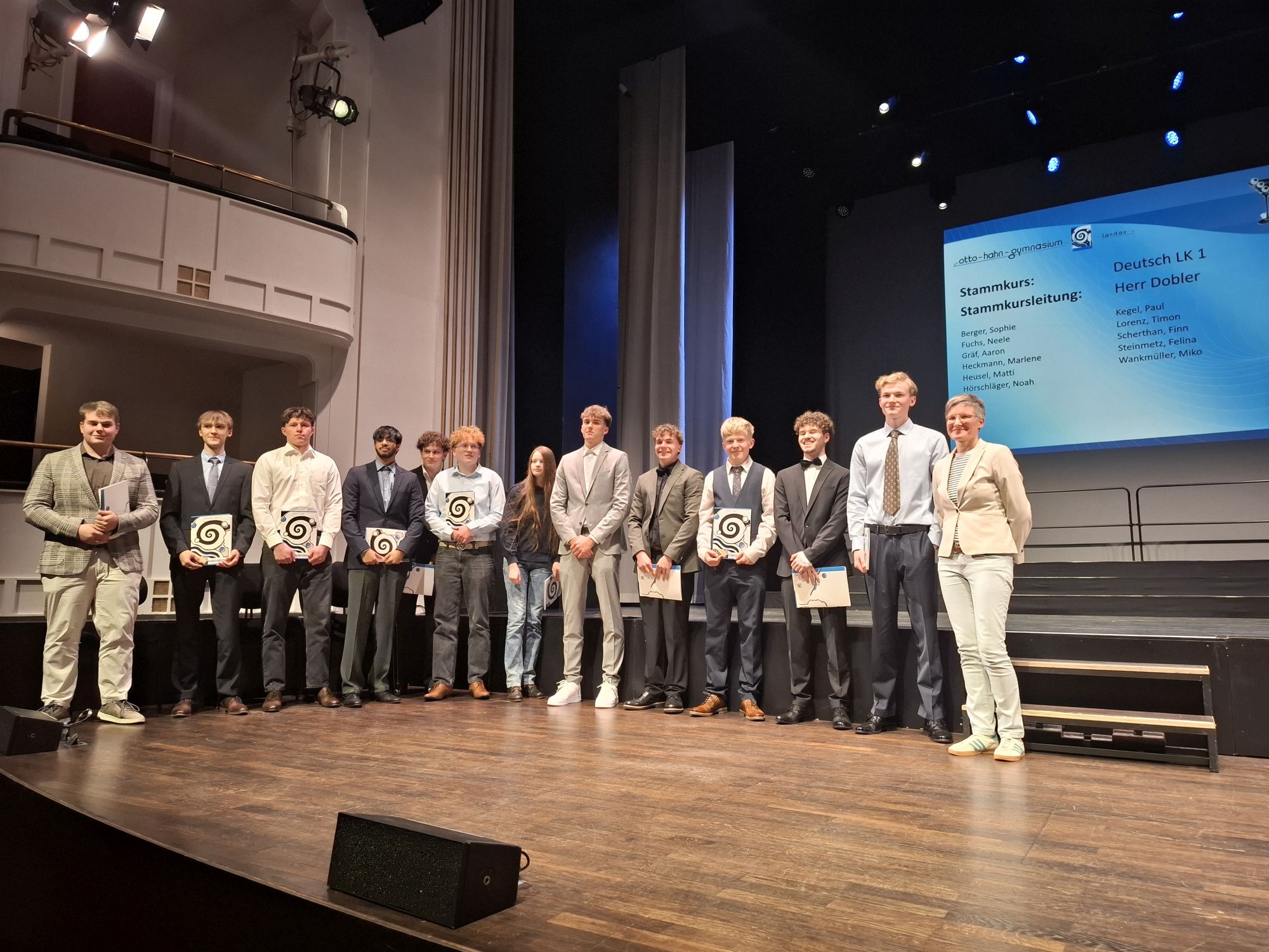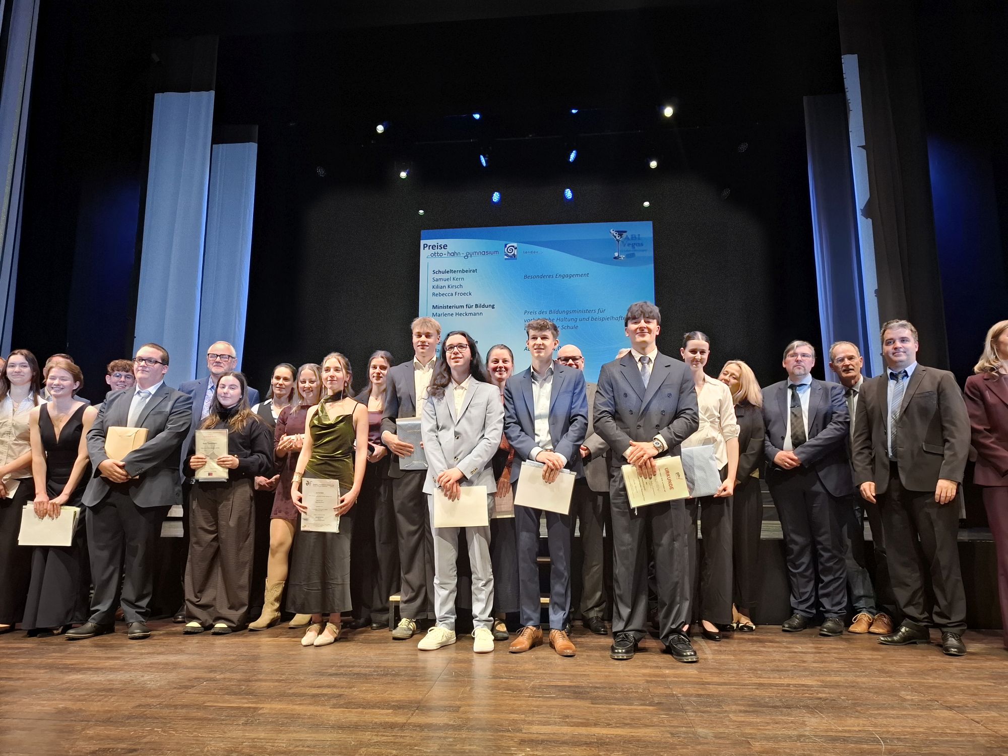 Für die herausragende Abiturnote von 1,0 wurden Madeleine Haas, Marleen Kästel, Gaya Sarian und Fynn-Lasse Herrmann durch den Kreis der Freunde ausgezeichnet. Den Preis des Ministers für vorbildliche Haltung und beispielhaften Einsatz innerhalb der Schulgemeinschaft erhielt Marlene Heckmann. Bereits zuvor hatte der Schulelternbeirat Rebecca Froeck, Samuel Kern und Kilian Kirsch für besonderes Engagement während ihrer Schulzeit gewürdigt.