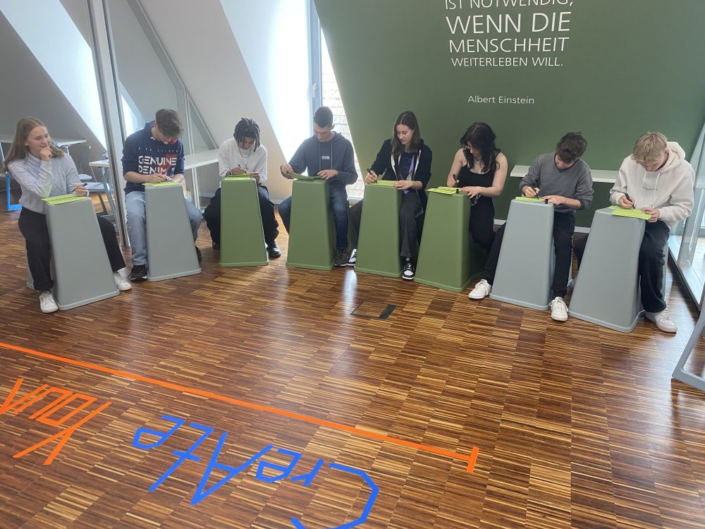 Am 03.04.2024 fand ein Workshop der VR-Bank Südpfalz statt, an dem einige Schülerinnen und Schüler des OHGs teilnahmen. Angefangen mit einem kleinen Willkommenssnack begaben wir uns in die Räume der VR-Bank und lernten die Leiterinnen und ihren Arbeitsbereich grob kennen. Anschließend machten wir uns über unsere Zukunft Gedanken. Wir schrieben Zettel mit Zielen im Leben und verteilten diese auf einem Zeitstrahl, während wir sie den anderen Teilnehmer*innen vorstellten. Danach überlegten wir, bei welchen Schritten wir Hilfe und Unterstützung gebrauchen könnten und wer dafür in Frage kommt. Nach einer kurzen Pause ging es dann um Social Media, heutige Kommunikation und Nachhaltigkeit.